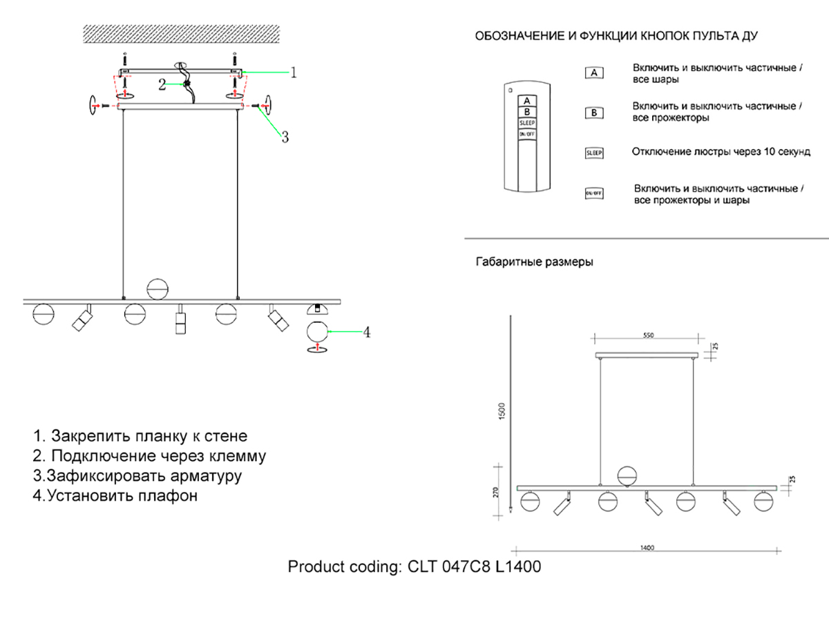 Светильник подвесной Crystal Lux CLT 047C8 L1400 BL-GO - модель из коллекции CLT 047. Стиль - современный. Страна производства - Испания. Арматура светильника из металла черного и бронзового цветов. Плафоны из белого стекла. Габаритные размеры - 270-1500 мм высота, 1000 мм длина. Место установки - барная стойка, кабинет, кухня, холл. Площадь освещения - 12-13 м2. Гарантия - 1 год. Купить светильник подвесной Crystal Lux CLT 047C8 L1400 BL-GO из коллекции CLT 047 можно с доставкой 1-2 дня с момента заказа.